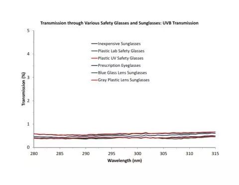 在大多数情况下,太阳眼镜都有防UV辐射危害的作用;通过简单测量和已有的认知,我们可以基本可以判断防护眼镜和太阳眼镜都可以有效地吸收UVA和UVB辐射。另外,越昂贵的太阳镜由于应用了更有效的过滤可见光镀膜技术,所以价格上要高于其他产品。但是,即使是普通的太阳眼镜,也能很有效地防止过多的可见光透过。