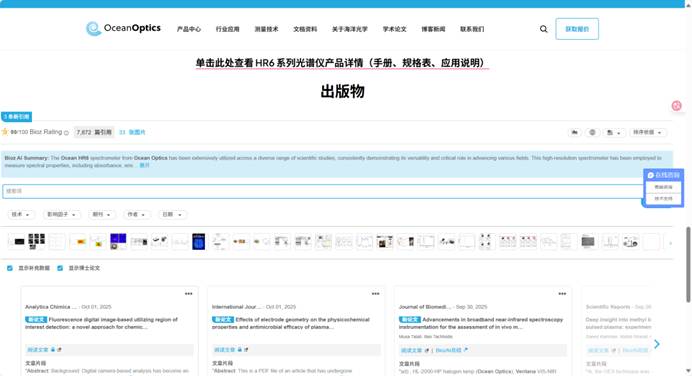 当你浏览官网任何一款光谱仪时,产品页会自动关联相关论文!仪器性能好不好,看论文就知道!我们的数据库每天都在更新,AI技术加持,带你紧跟全球科研最前沿!