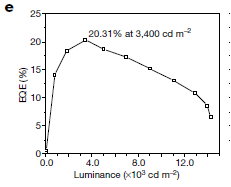 一种LED外量子效率(EQE)超过20%的钙钛矿LED,工作寿命(T50)超过100h!