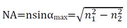 其中n为光在空气中的折射率,αmax为收光角的半角,n1为纤芯的折射率,n2为包层的折射率。